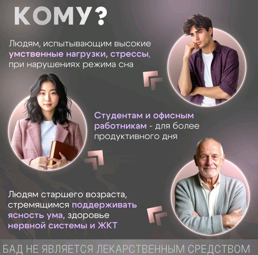 Глицин – препятствует истощению нервной системы, устраняет состояние перевозбуждения, повышает концентрацию внимания, снижает чувство беспокойства, способствует уменьшению стресса и умственного перенапряжения. Глицин улучшает настроение и сон, повышает работоспособность.